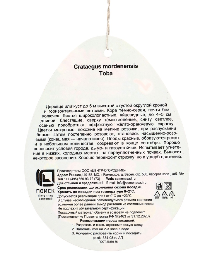 Боярышник морденский Тоба туба, 1 шт. Весна 2026