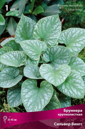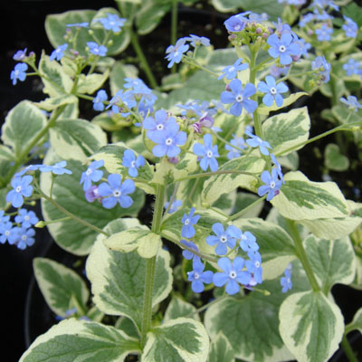 цветы голубые, по краю листьев серебристые пятна