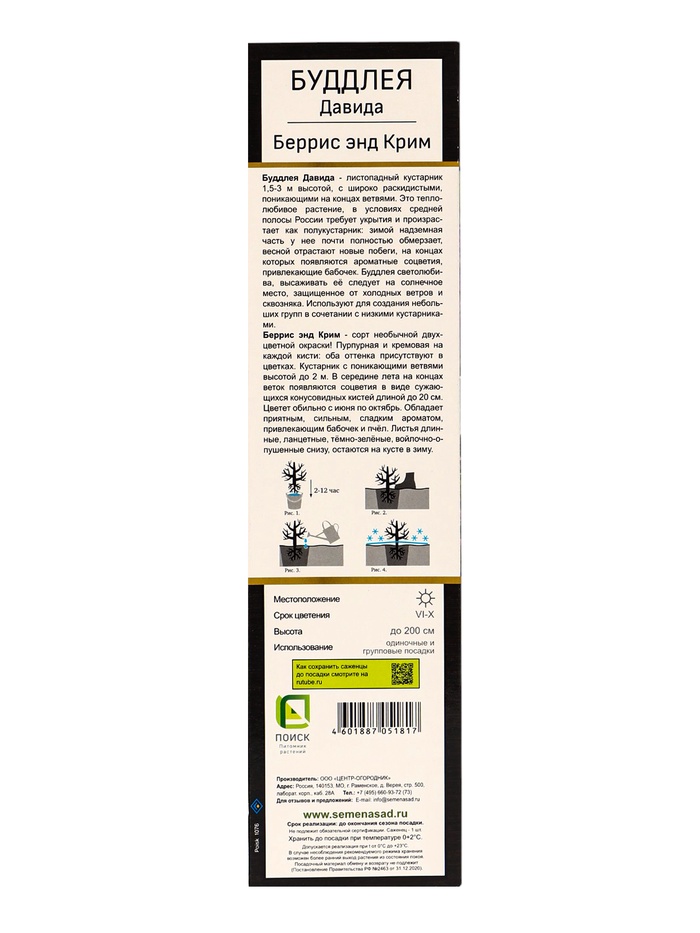 Буддлея Давида Люкс Беррис энд Крим 1 шт., туба Весна 2026