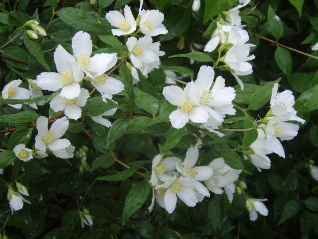 Чубушник Аваланш (Земляничный) Кустарник до 1,5 м высотой с тонкими коричневым побегами, покрытыми узкими мелкими (до 2 см длиной) светло-зелеными листьями. Цветет в начале 2-й декады июня очень обильно простыми белыми цветками до 3 см в диаметре, которые образуются по 1-3 на коротких пазушных побегах и изящно расцвечивают ниспадающие вниз ветви, издавая при этом нежный земляничный аромат.
