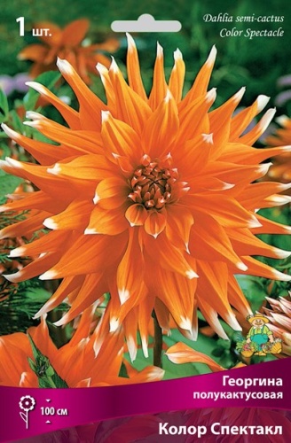 оранжево-желтый, с контрасно-белыми заостренными кончиками, диаметр цветка 17 см