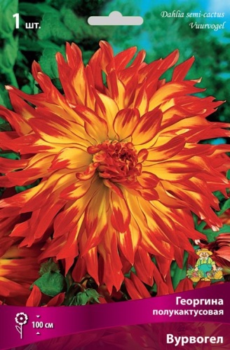 желтый, с ярко-красными кончиками, лепестки волнистые, диаметр цветка 15 см