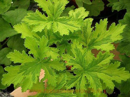 Одна из самых популярных и привлекательных душистых пеларгоний. Бледно-серо-зеленые листья имеют тонкую белую кайму, глубоко разделены и при растирании имеют запах розы. Цветки одиночные, маленькие, бледно-лилового цвета с более темным оперением на двух верхних лепестках, растение имеет компактный рост.