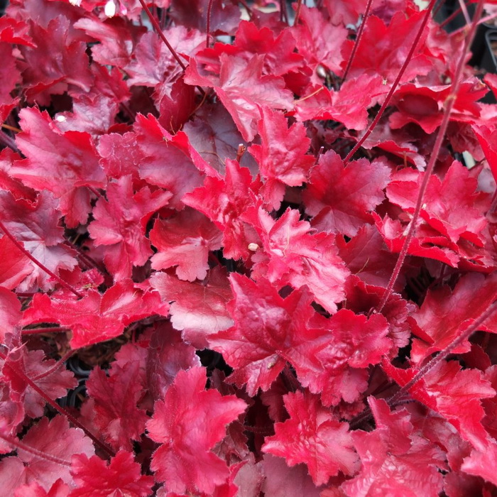 Год селекции : 2010 Куст до 40 см и шириной до 30 см. Листья рифленые, огнено-красного цвета. Цветоносы высотой 50 см, цветки розово-белые. Цветение наблюдается с апреля по октябрь