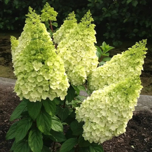 цветки в начале лаймово-белые, затем появляется розовая кайма и в конце становятся малино-бордового цвета, соцветия 50 см Гортензия метельчатая сорт Металлика — это эффектный декоративный кустарник с необычными и выразительными соцветиями, который станет украшением любого сада. Крупные конические соцветия состоят из плотных белых цветков, которые постепенно приобретают серебристо-розовый оттенок, создавая оригинальный и современный декоративный эффект. Листья зелёные, овальной формы, с заострённой вершиной и слегка зубчатым краем, формируют густую и аккуратную крону. Сорт отличается прочными побегами, компактной формой куста, обильным и продолжительным цветением, а также высокой зимостойкостью.