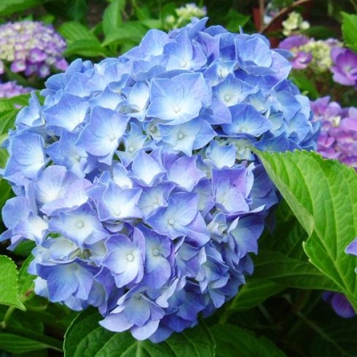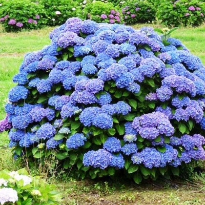 Основной окрас цветка синий. Но главная особенность культуры заключается в том, что она может менять оттенок цветков исходя из наполнения почвы. Если грунт кислый, лепестки будут ярко-синего цвета, если в земле больше щелочи, то лепестки примут розовый оттенок. Осенью окрас меняется на фиолетово-красный.