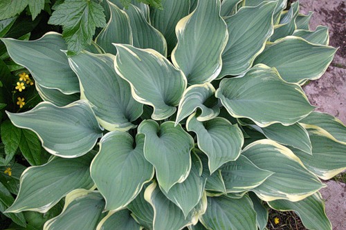 Поистине королевская внешность этого сорта сделала его лидером 2003 года. ысотой до 90 см и шириной до 1,5 м, не мог остаться незамеченным. Весной его сизо-зеленые с морозной дымкой листья украшены нежно-желтой окантовкой, летом они становятся темно-зелеными с яркой белой каймой. Цветы светло-лавандовые, появляются в августе Не повреждается слизнями.