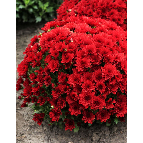 Хризантема Чир Ред - цветки ярко-красные, махровые, диаметр цветка 4-5 см. Куст до 40 см. Период цветения с августа и до самых заморозков.