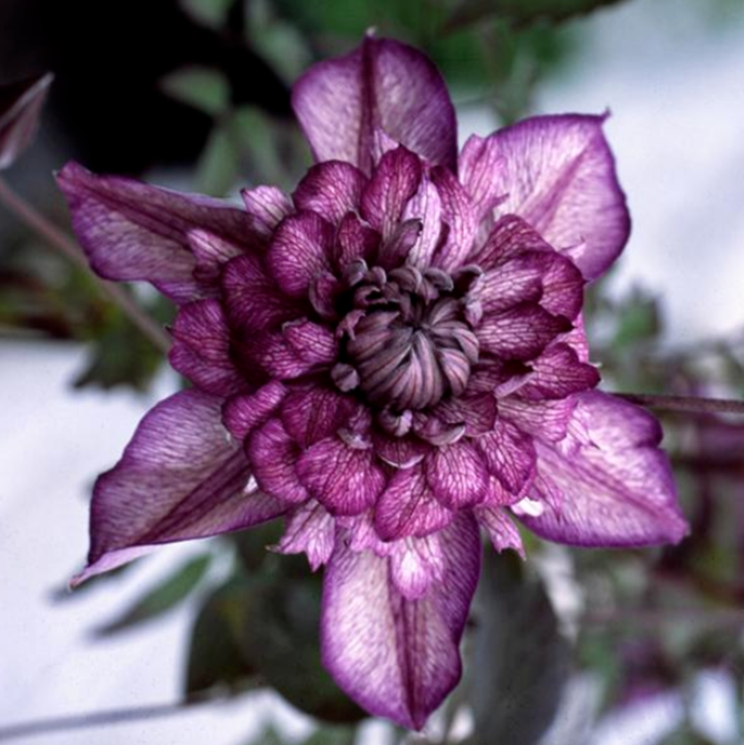 Окраска цветков: цветки махровые, имеет насыщенный темный сливово-фиолетовый окрас;