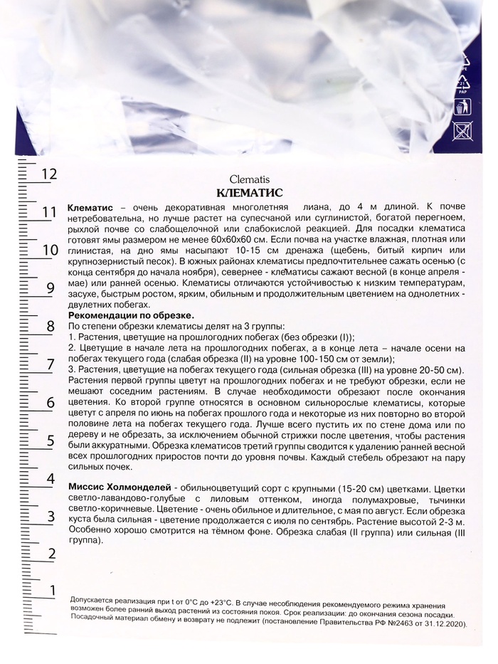 Клематис крупноцветковый Миссис Холмонделей, капер, 1 шт., Весна 2026