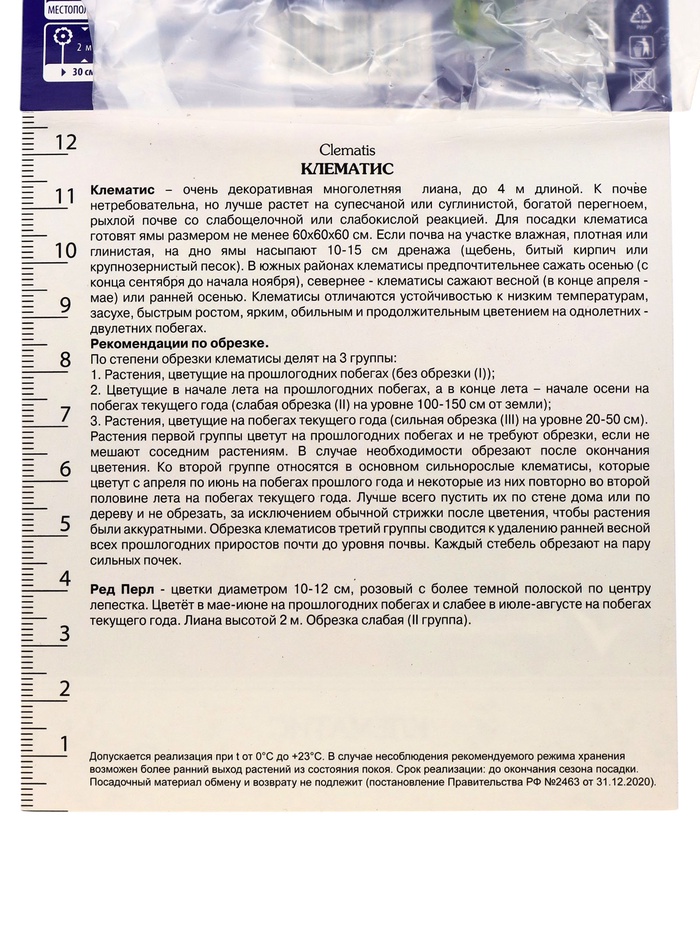 Клематис крупноцветковый Ред Перл, капер, 1 шт., Весна 2026