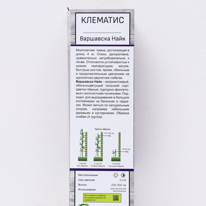 Клематис крупноцветковый «Варшавска Найк» лиана, 1 шт., туба