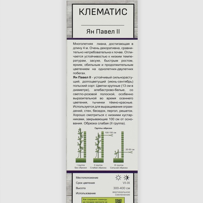 Клематис крупноцветковый Ян Павел II, туба 1 шт., Весна 2026