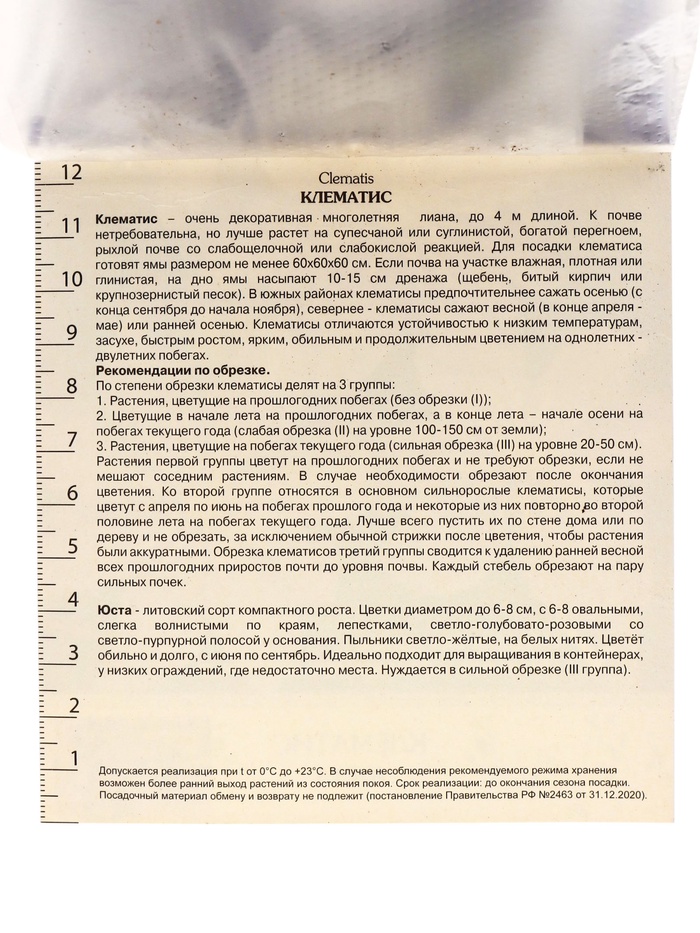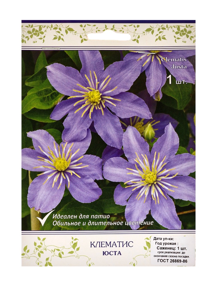 Клематис крупноцветковый Юста, капер, 1 шт., Весна 2026