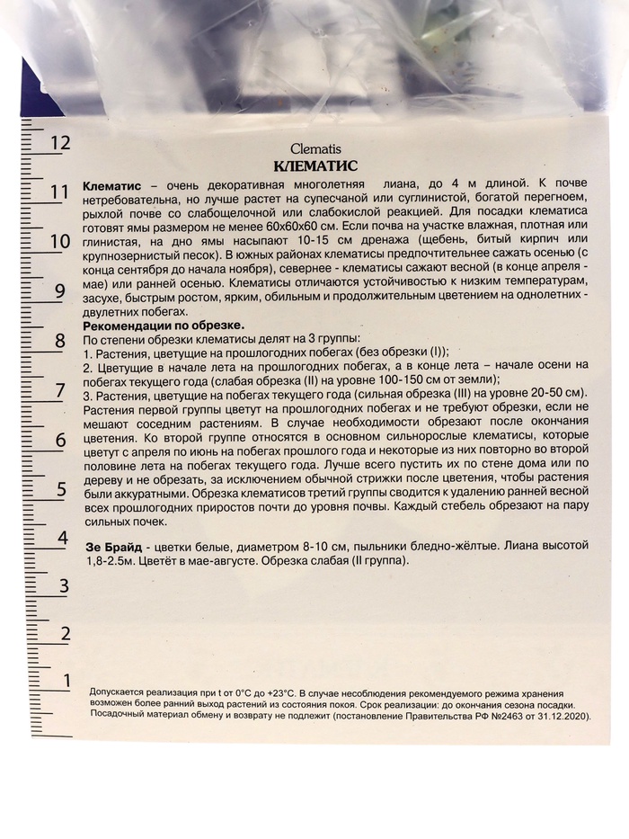 Клематис крупноцветковый Зе Брайд, капер, 1 шт., Весна 2026