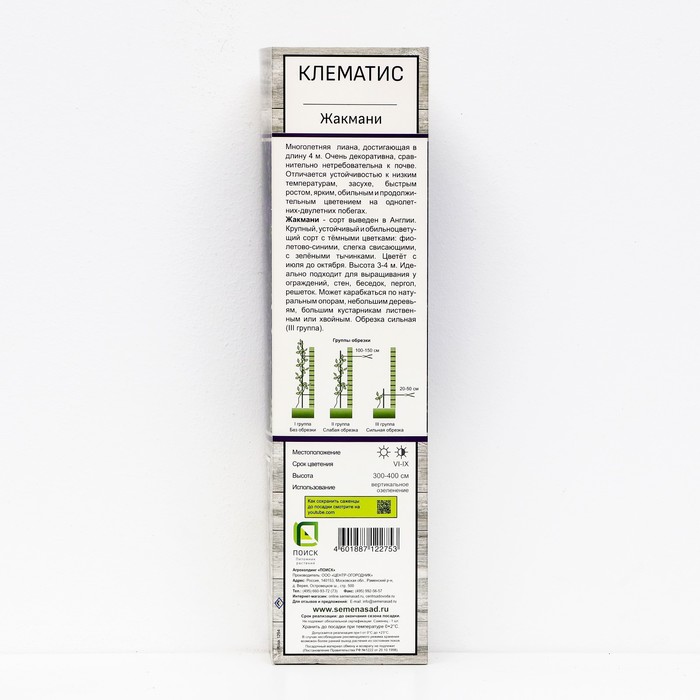 Клематис крупноцветковый Жакмани 1 шт., туба, Весна 2026