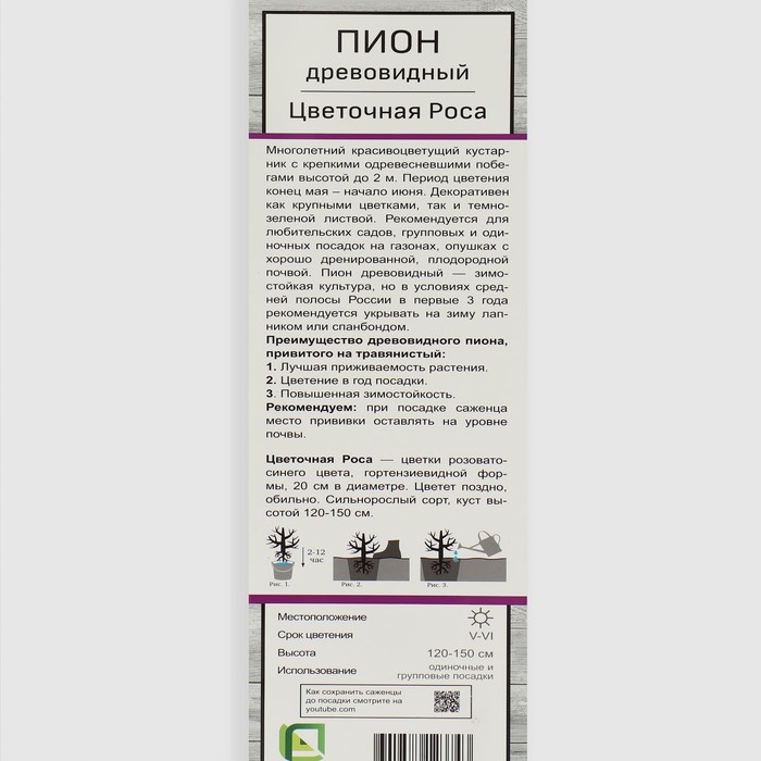 Пион древовидный Цветочная Роса 1 шт., туба, Весна 2026