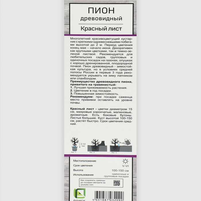 Пион древовидный Красный лист 1 шт., туба, Весна 2026