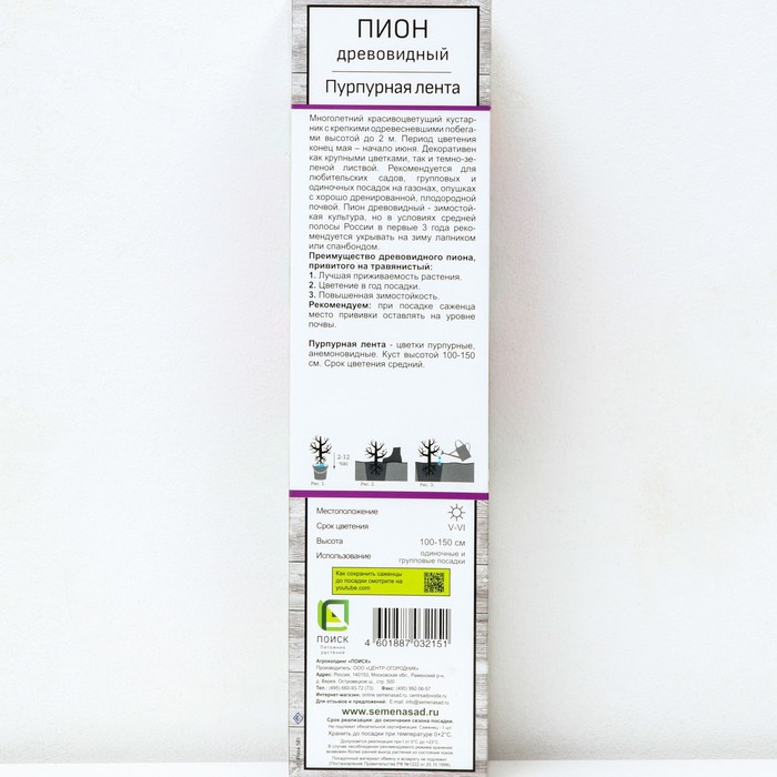 Пион древовидный (привитый на травянистый) "Пурпурная лента" 1 шт, туба, Весна 2026