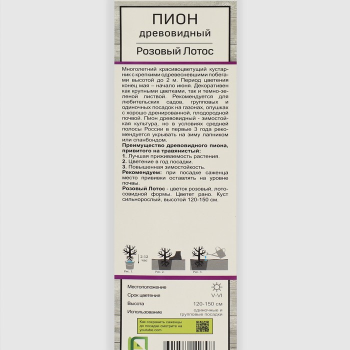 Пион древовидный Розовый Лотос 1 шт., туба, Весна 2026