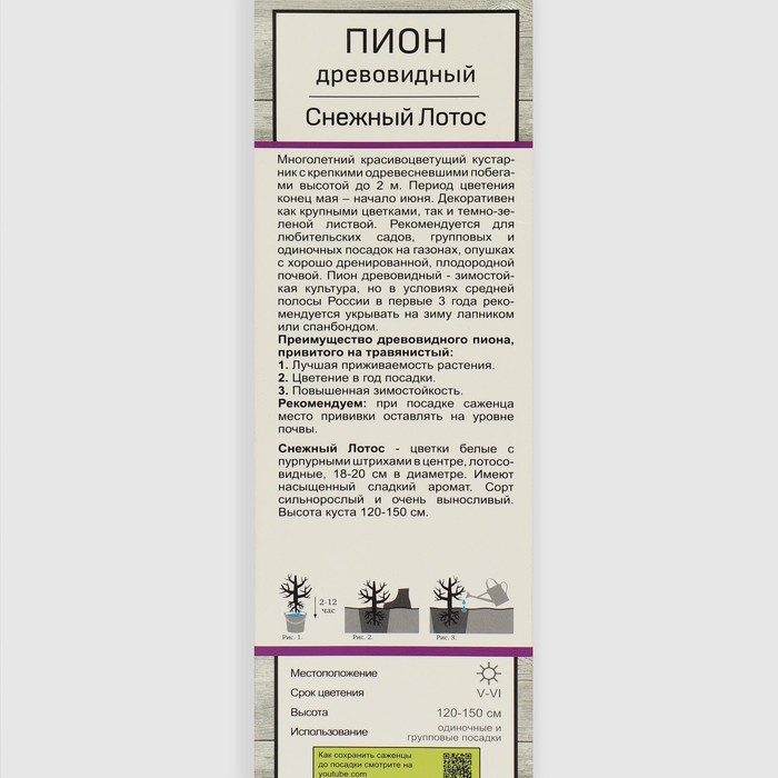 Пион древовидный Снежный лотос 1 шт., туба, Весна 2026