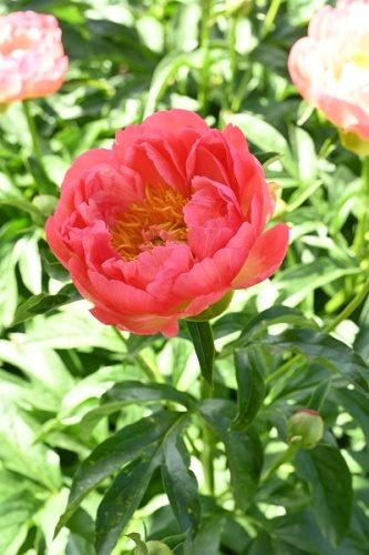 Гибридный. Ранний, полумахровый, ярко-кораллово-розовый, в полном роспуске соцветия могут иметь оттенки абрикосового, диаметр цветка 16 см, ароматный