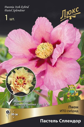Срок цветения средний. Полумахровый, лавандовый с пурпурным пятном в центре, позже пастельно-розовый, переходящий в кремовый, диаметр цветка 17см