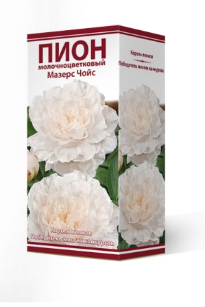 Среднепоздний, чисто-белый с кремовым оттенком внутри, махровый розовидный, плотный, стебли слабые, аромат приятный