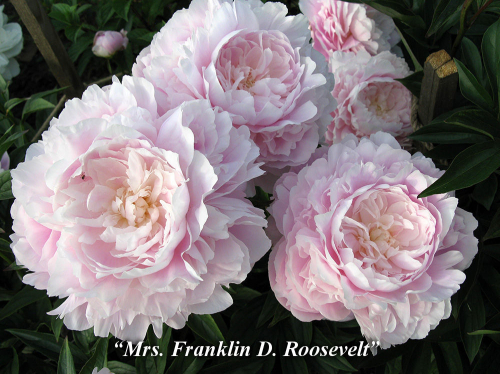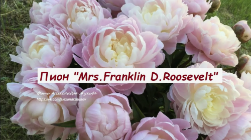 Миссис Франклин Д. Рузвельт - невероятно утонченный и красивый пион! цветок крупный, махровый, мягкий розовый тон внешних лепестков переходит в кремово-белый центр. Аромат приятный. Ранний-среднеранний. Золотая медаль Американского общества пионоводов 1948г. Чемпион общенациональных выставок пионов США 1963 и 1984гг..