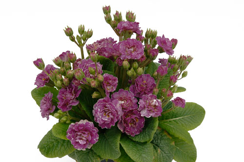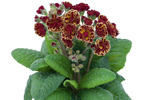 Махровые цветки в диаметре достигают до 5 см соцветие на высокой ножке. Морщинистые листья. Цветение начинается в апреле или мае. В конце лета может произойти повторное цветение. Эта примула отлично подойдет для бордюра, при посадке на затененной клумбе.