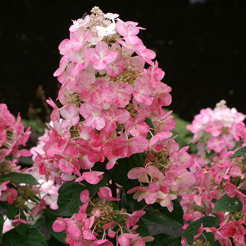 Красивоцветущий раскидистый кустарник. Соотношение стерильных и плодоносящих цветков примерно одинаковое. При роспуске белая, быстро розовеет и осенью становится пурпурно-красной. Характеризуется продолжительным цветением.