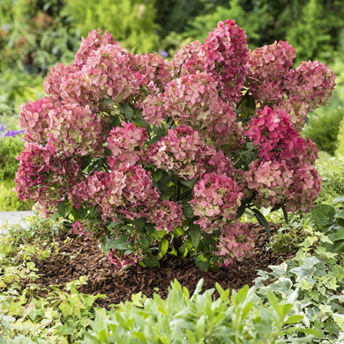 Компактный сорт. Соцветия плотные, состоят из крупных стерильных цветков и небольшого количества фертильных. В полном роспуске стерильные цветки перекрывают фертильные. В начале цветения лепестки имеют лаймовую окраску, затем слегка белеют, позже становятся розовыми, а в финале цветения – красными. Цветет обильно с начала июля по сентябрь.