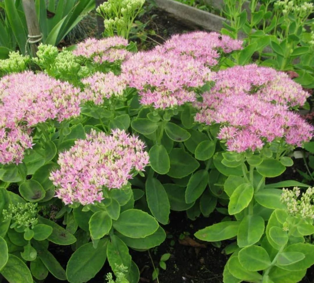 Цветки розовато-сиреневые или пурпурно-карминовые до 1 см в диаметре, собраны в полузонтики до 15 см в поперечнике. Цветет в сентябре-октябре 35-40 дней.