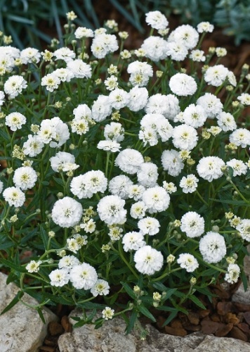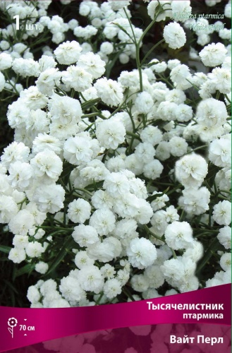 цветки перламутрово-белые, махровые, собраны в рыхлые щитковидные соцветия диаметром до 1,5 см.