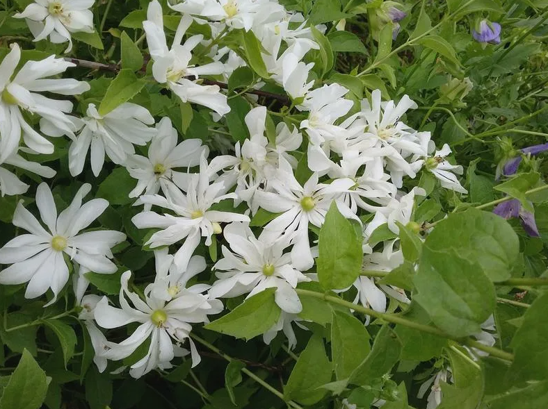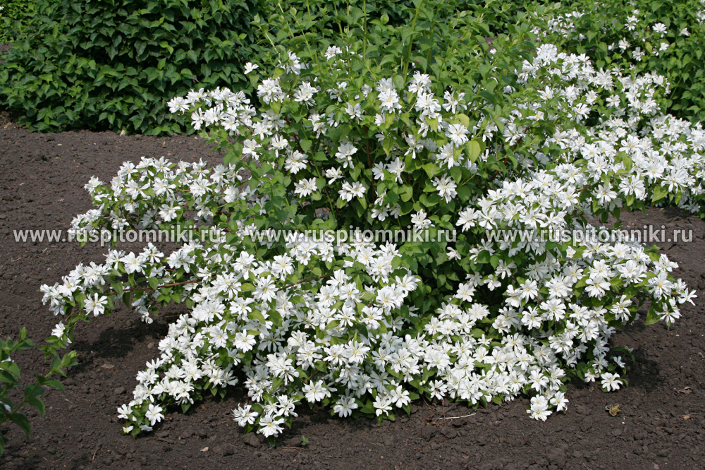 Цветение Цветки махровые, до 7см в диаметре, с узкими длинными лепестками, собраны по 5-7 штук в рыхлые кистевидные соцветья, ярко-белые, без аромата. Цветение обильное, с начала июня, длится месяц.