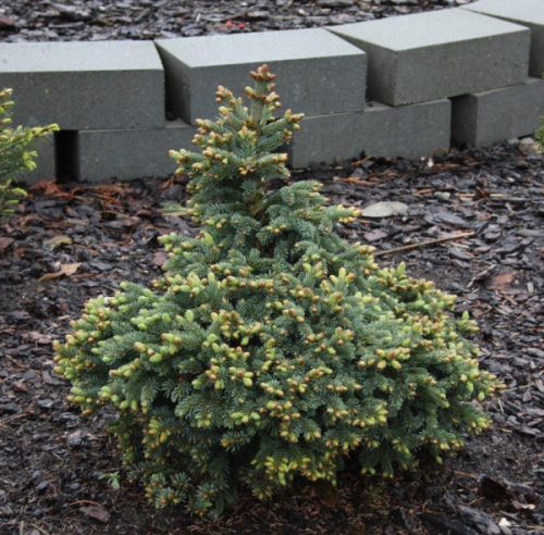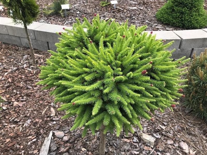 Карликовый сорт ели с плотным, плоско-сферическим, правильным ростом. Через 10 лет вырастает до 0,4 м в высоту и 0,5 м в ширину. Отличительной чертой этого сорта являются многочисленные красные шишки, появляющиеся весной на концах побегов. Предпочитает солнечные места, умеренно плодородные и умеренно влажные почвы. Красиво смотрится на штамбе.