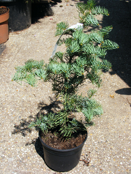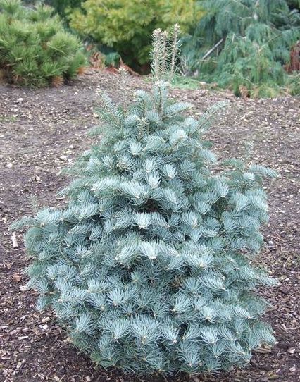 Очень красивое карликовое дерево- с конусовидной регулярной густой кроной и серебристой, изящной, длинной хвоей.