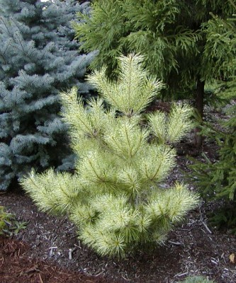 Высоко-декоративный сорт сосны с длинной вариегатной хвоей.