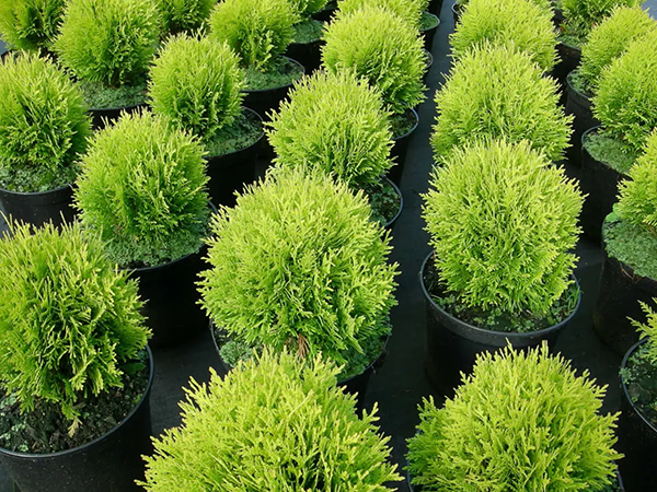 Карликовая шаровидная форма, растёт медленно, к 10-ти годам высота 40-50 см. Очень красивого желто – золотого цвета. Зимой становится более оранжевой, местами бронзовой. Прекрасно смотрится в саду круглый год. Подходит для создания низких бордюров, отлично смотрится в групповой посадке на газоне.