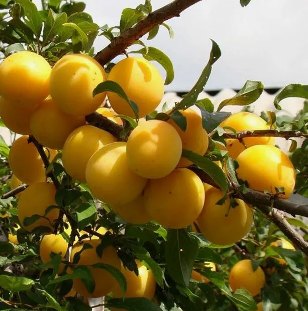 В высоту растение достигает до 3-4 метров. Фрукты большие, в форме овала, каждый весит 35-40 граммов. Цвет золотистый. Косточка средняя, отделяется с усилием. Плоды обладают особыми вкусовыми качествами: мякоть сладкая, но с ноткой кислинки. Сорт приносит богатые урожаи. В плодоношение вступает в конце июня – середине июля, что относится к наиболее ранним показателям. Созревание плодов неравномерное, состоит из 2-3 фаз, которые чередуются по истечении 5-7 дней. Плодоносить растение начинает через 4-5 лет. Данный сорт алычи морозоустойчив, выносит морозы до минус 30 градусов. конец июня – середина июля Рубиновой, Павловской жёлтой, Подарок Санкт-Петербургу 4-5 1,5-1,8 м