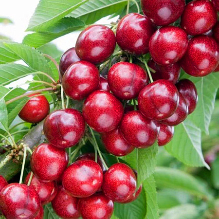 Плоды формируются довольно крупные, по форме напоминающие сердечко. Ягоды весом 9-12 г. Окрас у них насыщенный красный, при полной спелости темно-красного, почти бордового оттенка. Косточка мелкая, хорошо отделяемая от мякоти. Кожица плотная, но не толстая. После полного созревания плоды не осыпаются, не растрескиваются и не теряют своих вкусовых качеств. В плодоношение вступает на 2-3 год после посадки.