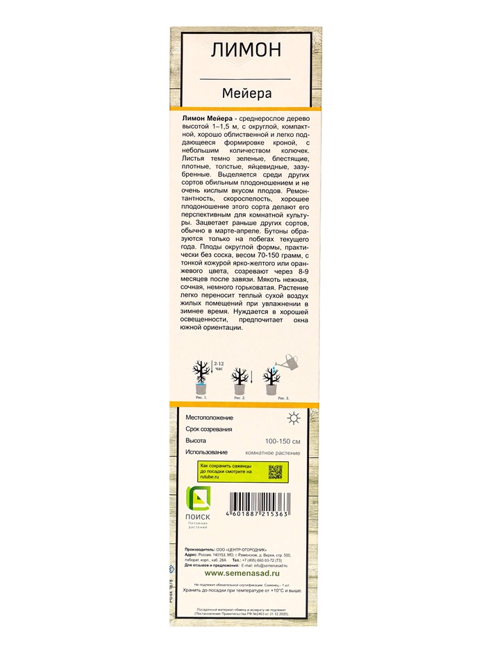 Цитрус Лимон Мейера, туба, 1 шт. Весна 2026