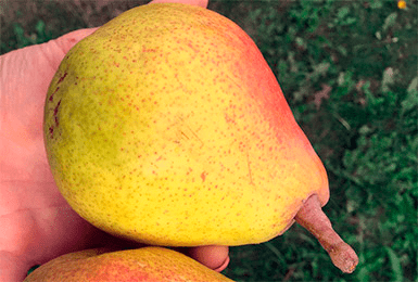 Плоды слегка удлинённой грушевидной формы, средние и крупные, массой 150—180 г, тонкокожие, по мере созревания будто наполняются солнечным светом, приобретая золотисто-желтоватые оттенки.Эталон десертного вкуса.Вкус изумительный.Мякоть тающая, нежная и сочная, ароматно-медовая, винно-сладкая. Снятые слегка недоспелыми плоды, хорошо хранятся и транспортируются в течение двух недель, а в прохладном месте могут хранится до месяца.