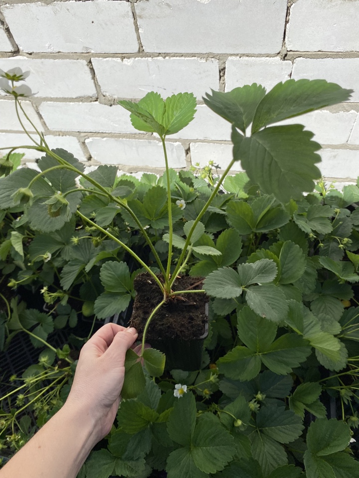 Клубника (крупн.земл.) Фестивальная в горшке , качество превосходное, многие сорта уже будут плодоносить), фото сделано 28.05.25, многие с цветом, посомтрите какие хорошие полноценные кусты