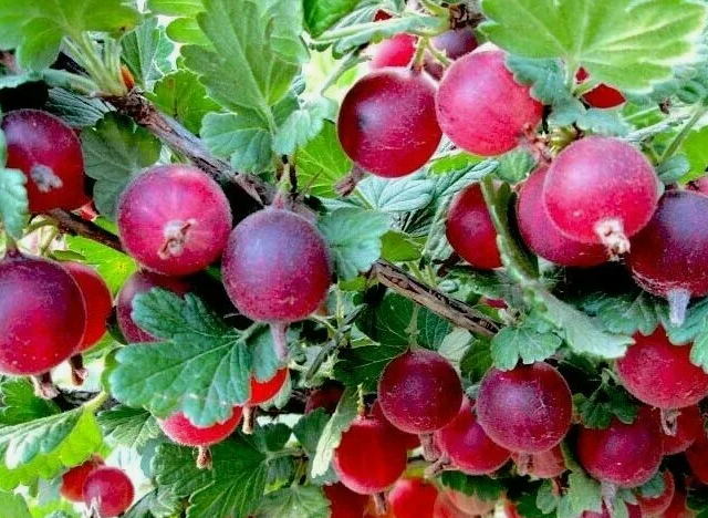 Куст среднерослый, слабораскидистый. Побеги прямые, средней толщины, направлены вверх и в стороны. Шиповатость сильная. Шипы расположены по всей длине побега. Лист средний по величине, широкоокруглый, зеленый, матовый или со слабым блеском. Ягоды от 3,9 до 6,0 г, средняя масса - 4,2 г, округлые и округло-овальные, равномерно окрашенные, темно-вишневого цвета, с густым бархатистым и редким щетинистым опушением по всей поверхности. Жилкование практически неразличимо. Кожица тонкая, нежная, но прочная. Чашечка средней длины и толщины, полусомкнутая. Вкус десертный, сладкий, с небольшой кислотой и ароматом. Ягоды универсального назначения. Зимостойкость и устойчивость к грибным болезням средняя. середина-конец июля Консул, Сенатор 2-3 0,3-0,5 м