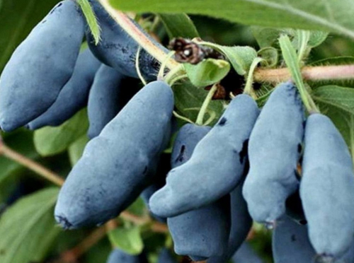 Плоды удлинённой формы с весом до 2-2,5 г, могут быть до 2,5-3,5 см в длину и до 8-10 мм в диаметре. Они имеют форму кувшинчика с небольшим валиком на конце, кожица сине-голубого цвета с восковым налётом, плотная.