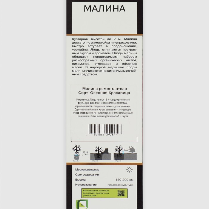 Малина ремонтантные сорта Осенняя Красавица 1 шт., туба, Весна 2026