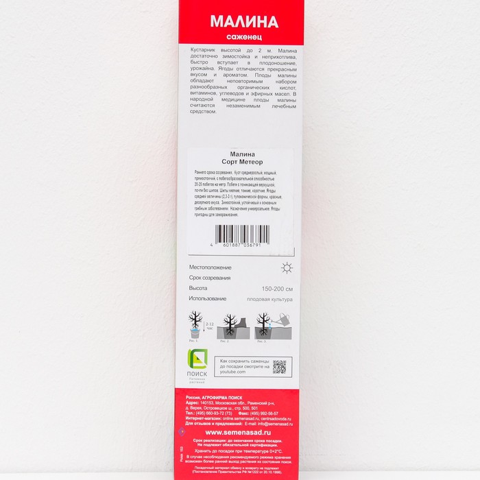 Малина традиционные сорта Метеор 1 шт., туба, Весна 2026