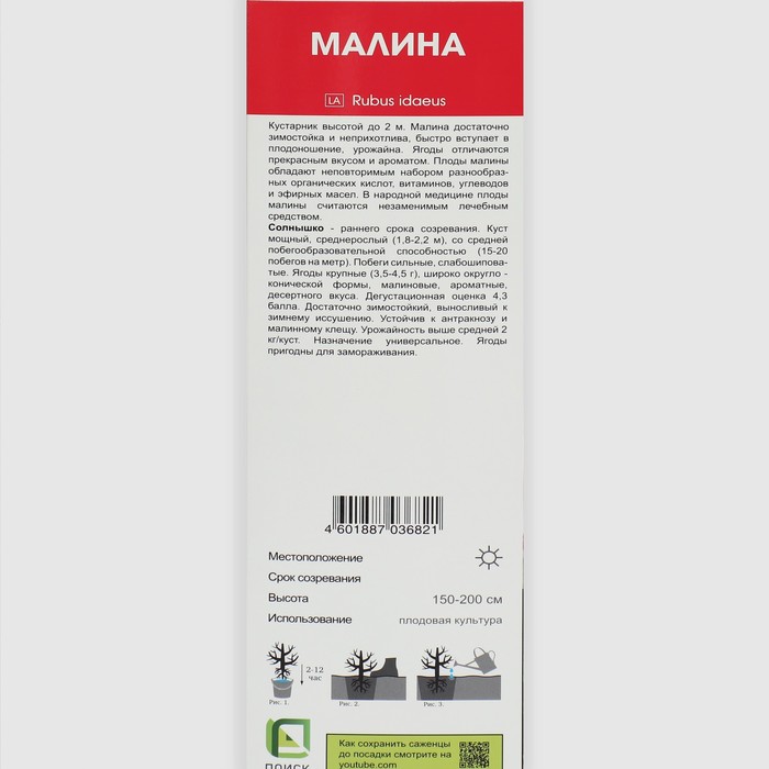 Малина традиционные сорта Солнышко 1 шт., туба, Весна 2026