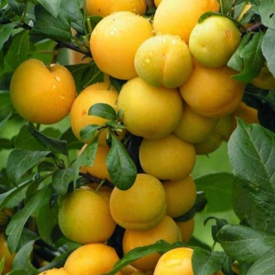 Шкурка у алычи плотная, средней толщины. Особенность покрытия – плотный слой сизого воскового налета. Мякоть немного хрящевата, по расцветке она красная. Средних размеров косточка отделяется с усилием.